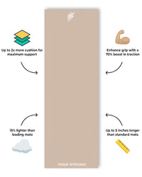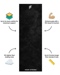 Experience the Yoga Strong Mat, meticulously designed for years by our team of yoga experts, athletes, and health practitioners, to address your exact concerns and provide unparalleled stability, confidence, and comfort.