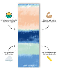 Beyond a color and pattern that suits your style, your yoga mat needs to keep you stable in your poses, yet be comfy and cushy. As a result,your Yoga Strong mat's personality is carefully designed and manufactured by our Research & Development Team to help you find a yoga mat you can be blissfully happy with — one that suits your practice, priorities, lifestyle, values, and budget.