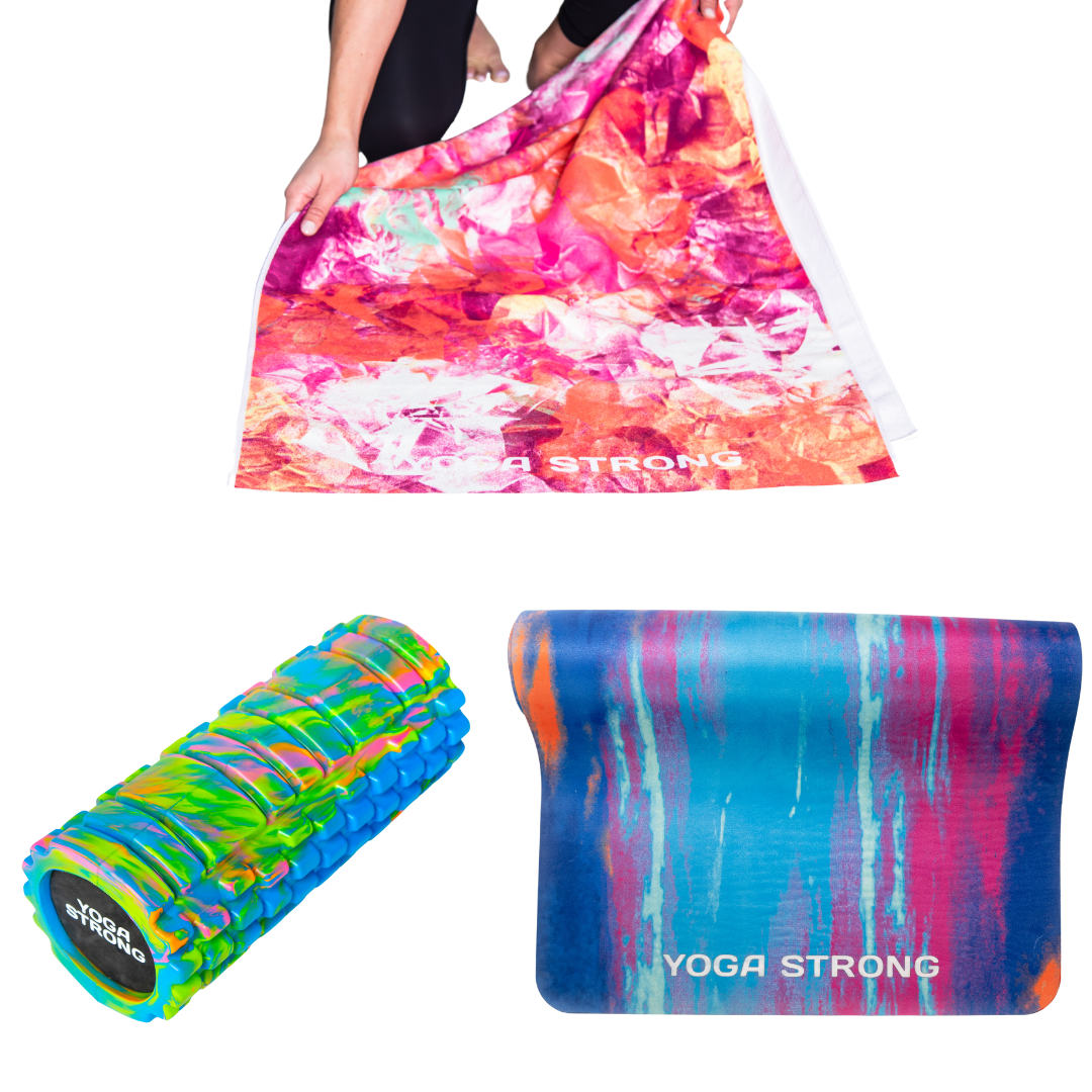 First, the Yoga Strong Towel is the perfect accessory for hot yoga or for those who sweat a lot during their workout. Made from a high-quality microfiber material, this towel is super absorbent and quick-drying, keeping you comfortable and dry throughout your practice. It's also great for using on top of gym equipment to keep it clean and sweat-free.